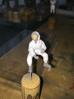 Tras el montaje de las figuras que visteis en el anterior post, procedía a la capa de imprimación. En este caso y dado que las figuras llevarán el correspondiente camuflaje de invierno, procedí a usar un gris claro de Tamiya (dilucción al 50%) para el posterior paso de pintura.
